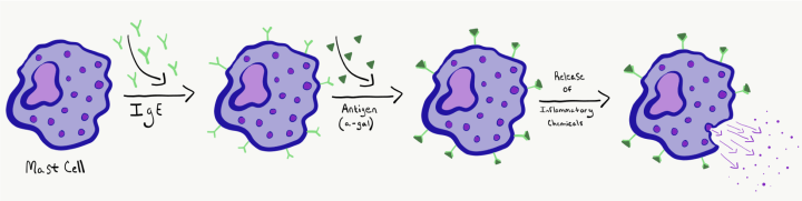 Curiously enough, the group found that all 6 men had a history of tick bites, and lived in regions where the Lone Star tick is known to reside. Previous epidemiological studies have determined that the Lone Star tick is likely the causative agent of α-gal sensitivities. These studies found that patients with IgE antibodies against α-gal live in regions where Lone Star ticks are common, and that these antibody responses correlate with a history of these tick bites. Furthermore, it was determined that there was a correlation between the presence of antibodies against α-gal and antibodies against tick proteins. Scientists are actively working to generate a mouse model to definitively conclude whether these bites are truly the cause of α-gal sensitivities and red meat allergies. However, for the time being, the work presented by Carter et al. has further served to bolster the link between these otherwise inexplicable red meat allergies and Lone Star tick bites.