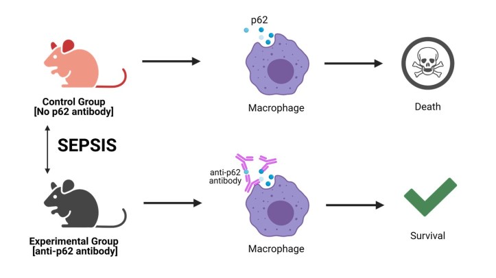 Interestingly, they were also able to show a connection between p62 and sepsis in humans. By comparing blood samples from patients that survived sepsis versus those that did not, they found a positive correlation between p62 levels and expression of inflammatory modulators that can lead to organ damage. Together, these observations form a strong foundation to suggest that p62 indeed has a role in exacerbating an inflammatory response in monocytes and macrophages during sepsis. This is, at least, the first step toward unraveling sepsis at a molecular level, as well as opening new avenues of research for treatment of sepsis, which we have thus far sorely lacked.